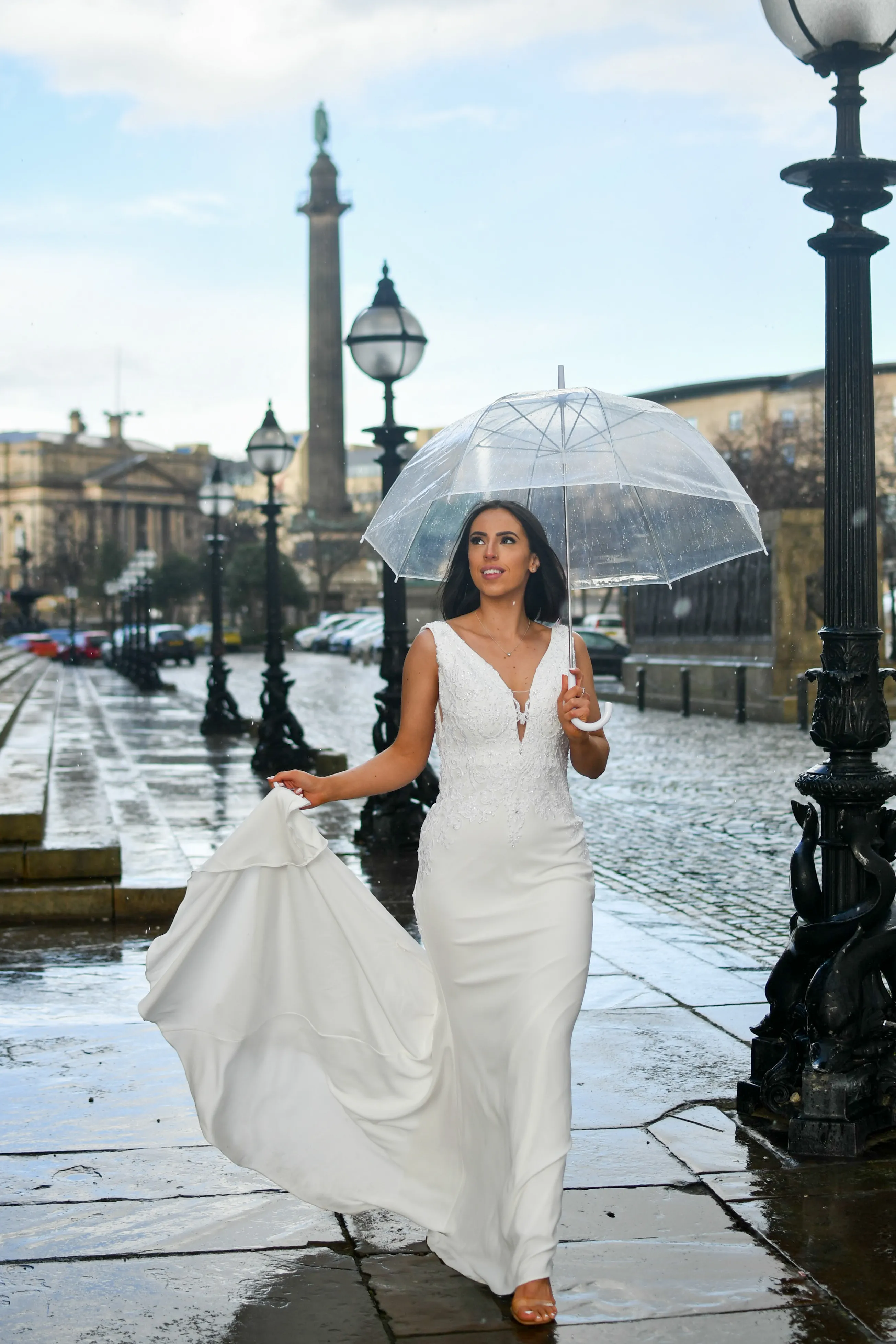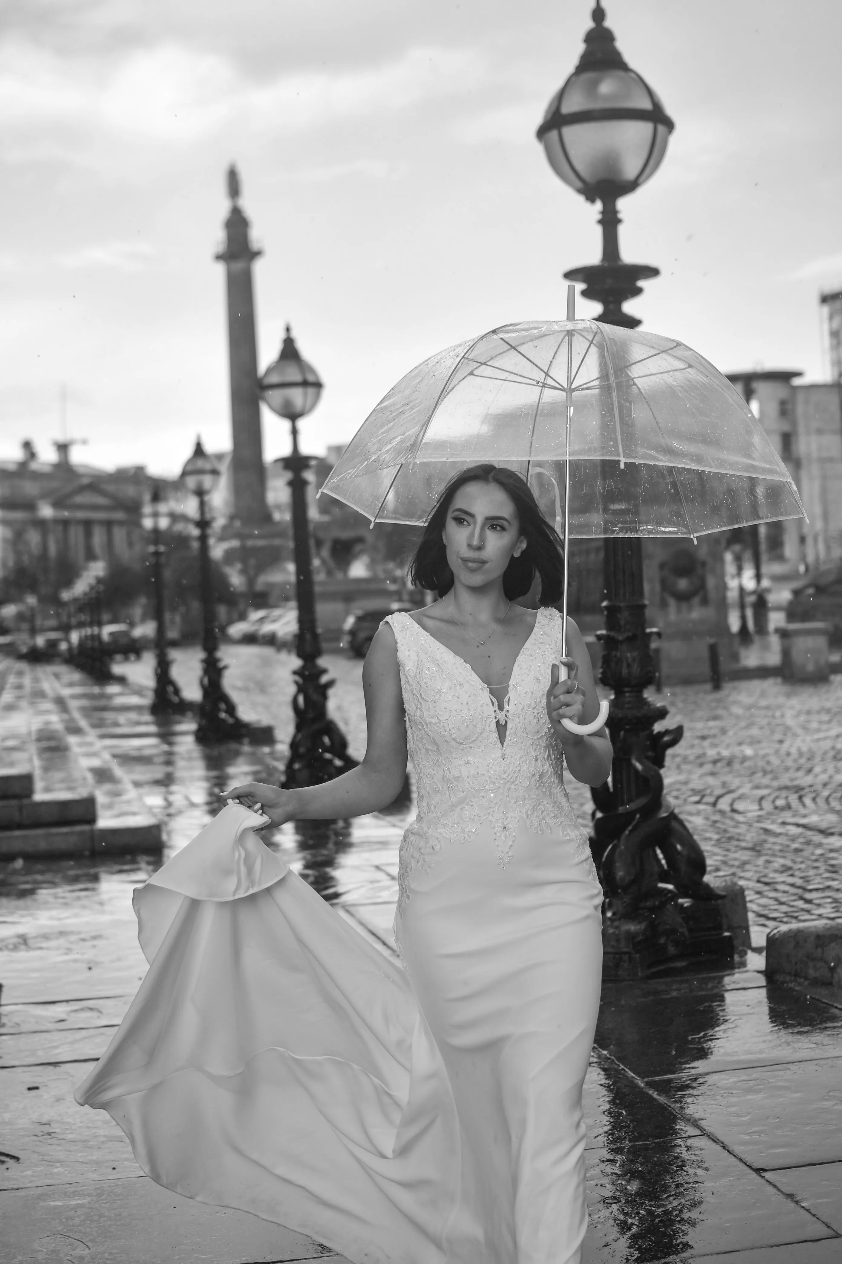The KAISHA gown exudes sophisticated glamour. Lace detailing and crepe fabric effortlessly drapes to accentuate the hourglass silhouette, while the low back flows into a fitted crepe skirt complete with train. This glamourous low back fitted sheath is perfect for brides wanting a sexy yet effortless gown.